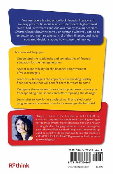 Most teenagers leaving school lack financial literacy and are easy prey for financial scams, student debt, high-interest credit, bad investments and dubious money-making schemes. Smarter Richer Braver helps you understand what you can do to empower your teen to take control of their finances and make educated decisions about how to use their money. This book will help you: Understand the roadblocks and complexities of financial education for the next generation Accept responsibility for the financial empowerment of your teenagers Teach your teenagers the importance of building healthy financial habits that will benefit them for years to come Recognise the mistakes to avoid with your teens to save you from spending time, money and effort repairing the damage Learn what to look for in a professional financial education programme and ensure you and your teens get the best deal