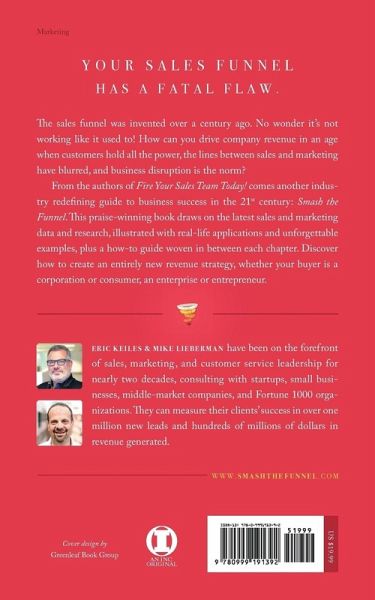 Your Sales Funnel Has a Fatal Flaw The sales funnel was invented over a century ago. No wonder it’s not working like it used to! How can you drive company revenue in an age when customers hold all the power, the lines between sales and marketing have blurred, and business disruption is the norm? From the authors of Fire Your Sales Team Today! comes another industry redefining guide to business success in the 21st century: Smash the Funnel. Discover how to create an entirely new revenue strategy, whether your buyer is a corporation or consumer, an enterprise or entrepreneur.