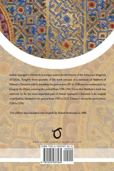 Smbat Sparapet's Chronicle is a major source for the history of the Armenian Kingdom of Cilicia. Roughly three-quarters of the work consists of a summary of Matthew of Edessa's Chronicle which describes the period from 951 to 1136 and its continuation by Gregory the Priest, covering the period from 1136-1162. Given that Matthew's wrk has survived, by far the most important part of Smbat Sparapet's Chronicle is its original contribution, devoted to the period from 1163 to 1272. Volume I covers the period from 1136 to 1150. This edition was translated into English by Robert Bedrosian.