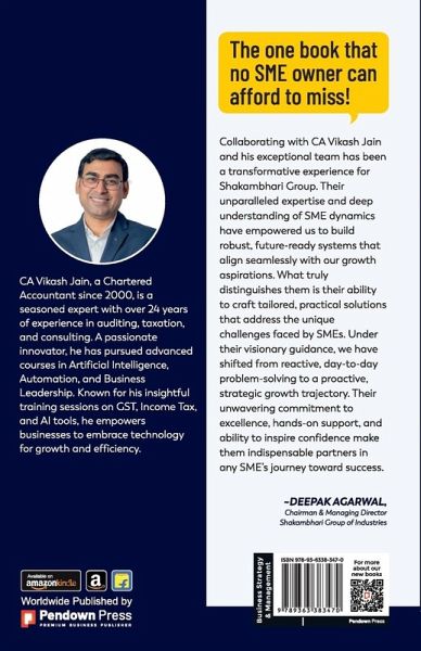 SME to SME offers a step-by-step guide for transforming your business from a Small & Medium Enterprise into a Systematically Managed Enterprise. Drawing from 24 years of hands-on experience, the author presents practical strategies, proven systems, and actionable insights to help entrepreneurs scale, streamline, and thrive in a competitive world. CA Vikash Jain, a Chartered Accountant since 2000, is a seasoned expert with over 24 years of experience in auditing, taxation, and consulting. A passionate innovator, he has pursued advanced courses in Artificial Intelligence, Automation, and Business Leadership. Known for his insightful training sessions on GST, Income Tax, and Al tools, he empowers businesses to embrace technology for growth and efficiency