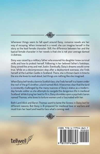 Whenever things seem to fall apart around Daisy, romance novels are her way of escaping. When immersed in a novel, she can imagine herself in the story as the lead female character. Still, the difference between her and the typical female character in her novels is that she is not your average damsel in distress. Daisy was raised by a military father who ensured his daughter knew survival skills and how to protect herself. Following in her beloved father's footsteps, Daisy joined the army and met Justin. Eventually, Daisy's dreams would come true. While on a decompression stop after a deployment overseas, she finds herself at the Lachlan Castle in Scotland. There, she is thrown back in time to the era she loves to read about, but things are nothing like she imagined. When Daisy befriends a bonnie Scottish lass, she finds herself in a haven under the roof of the girl's brother, a laird named Alick. It becomes clear that the laird is constantly challenged by the many nuances of Daisy's status as a modern-day female soldier as she attempts to navigate the dangerous life in medieval Scotland. While trying her best to fit in, Daisy stumbles upon a psychotic baron named Thomas, who loves to torture women and is fascinated with her. Both Laird Alick and Baron Thomas want to tame the lioness in Daisy but for different reasons. But Daisy is ill-prepared for medieval love or warfare and must train her heart and head to face what's coming next.