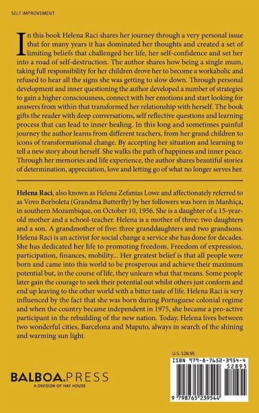 In this book Helena Raci shares her journey through a very personal issue that for many years it has dominated her thoughts and created a set of limiting beliefs that challenged her life, her self-confidence and set her into a road of self-destruction. The author shares how being a single mum, taking full responsibility for her children drove her to become a workaholic, refuse to hear all the signs she was getting to slow down. Through personal development and inner questioning the author developed a number of strategies to gain a higher consciousness, connect with her emotions and start looking for answers from within that transformed her relationship with herself. The book gifts the reader with deep conversations, self reflective questions and learning process that can lead to inner healing. In this long and sometimes painful journey the author learns from different teachers, her grand children to icons of transformational change. By accepting her situation and learning to tell a new story about herself. She walks the path of happiness and inner peace. Through her memories and life experience, the author shares beautiful stories of determination, appreciation, love and letting go of what no longer serves her.