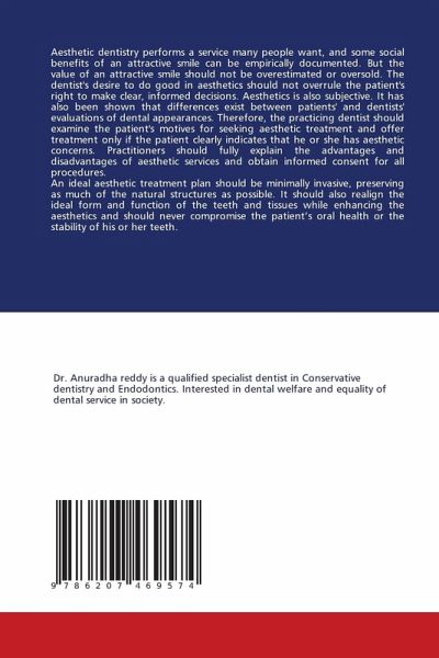 Aesthetic dentistry performs a service many people want, and some social benefits of an attractive smile can be empirically documented. But the value of an attractive smile should not be overestimated or oversold. The dentist's desire to do good in aesthetics should not overrule the patient's right to make clear, informed decisions. Aesthetics is also subjective. It has also been shown that differences exist between patients' and dentists' evaluations of dental appearances. Therefore, the practicing dentist should examine the patient's motives for seeking aesthetic treatment and offer treatment only if the patient clearly indicates that he or she has aesthetic concerns. Practitioners should fully explain the advantages and disadvantages of aesthetic services and obtain informed consent for all procedures.An ideal aesthetic treatment plan should be minimally invasive, preserving as much of the natural structures as possible. It should also realign the ideal form and function of the teeth and tissues while enhancing the aesthetics and should never compromise the patient's oral health or the stability of his or her teeth.