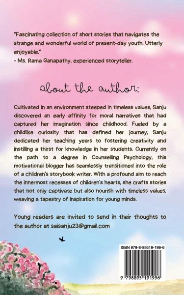 The stories convey the timeless precious values of faith in God, gratitude, joy of hope, courage, and grit. The book has a special 'Readers Space' where the author wants the reader to take a momentary break and reflect on the story read. A quick-read book filled with amusing stories that are reflective and inspiring.