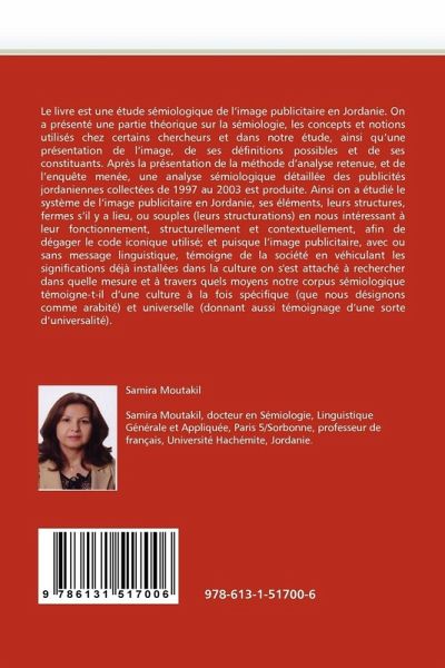 Le livre est une étude sémiologique de l'image publicitaire en Jordanie. On a présenté une partie théorique sur la sémiologie, les concepts et notions utilisés chez certains chercheurs et dans notre étude, ainsi qu'une présentation de l'image, de ses définitions possibles et de ses constituants. Après la présentation de la méthode d'analyse retenue, et de l'enquête menée, une analyse sémiologique détaillée des publicités jordaniennes collectées de 1997 au 2003 est produite. Ainsi on a étudié le système de l'image publicitaire en Jordanie, ses éléments, leurs structures, fermes s'il y a lieu, ou souples (leurs structurations) en nous intéressant à leur fonctionnement, structurellement et contextuellement, afin de dégager le code iconique utilisé; et puisque l'image publicitaire, avec ou sans message linguistique, témoigne de la société en véhiculant les significations déjà installées dans la culture on s'est attaché à rechercher dans quelle mesure et à travers quels moyens notre corpus sémiologique témoigne-t-il d'une culture à la fois spécifique (que nous désignons comme arabité) et universelle (donnant aussi témoignage d'une sorte d'universalité).