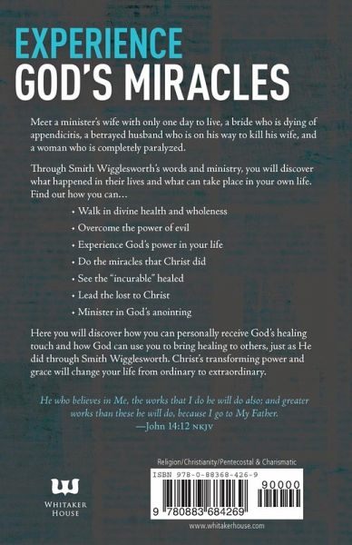 Experience God's Miracles"He who believes in Me, the works that I do he will do also; and greater works than these he will do, because I go to My Father." -John 14:12 NKJVMeet a minister's wife with only one day to life, a bride who is dying of appendicitis, a betrayed husband who is on his way to kill his wife, and a woman who is completely paralyzed. Through Smith Wigglesworth's words and ministry, you will discover what happened in their lives, and what can take place in your own life. Find out how you can-Walk in divine health and wholeness-Overcome the power of evil-Experience God's power in your life-Do the miracles that Christ did-See the "incurable" healed-Lead the lost to Christ-Minister in God's anointingHere you will discover how you can personally receive God's healing touch and how God can use you to bring healing to others, just as He did through Smith Wigglesworth. Christ's transforming power and grace will change your life from ordinary to extraordinary.