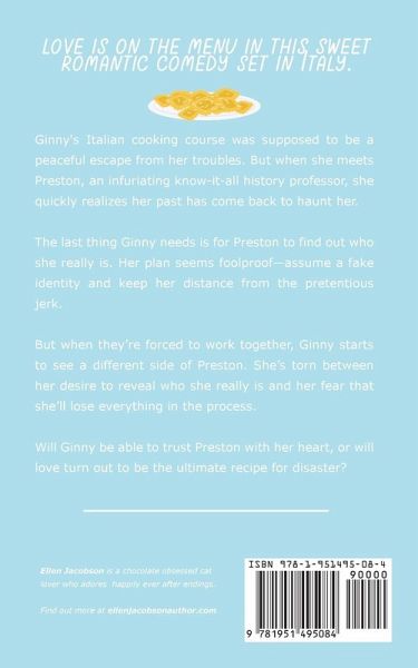 Love is on the menu in this sweet romantic comedy set in Italy. Ginny's Italian cooking course was supposed to be a peaceful escape from her troubles. But when she meets Preston, an infuriating know-it-all history professor, she quickly realizes her past has come back to haunt her. The last thing Ginny needs is for Preston to find out who she really is. Her plan seems foolproof-assume a fake identity and keep her distance from the pretentious jerk. But when they're forced to work together, Ginny starts to see a different side of Preston. She's torn between her desire to reveal who she really is and her fear that she'll lose everything in the process. Will Ginny be able to trust Preston with her heart, or will love turn out to be the ultimate recipe for disaster? If you like quirky characters, happily ever afters, and the occasional drooling cat, you'll love Ginny and Preston's story. Want more hilarious travel adventures and romance? Check out the other standalone books in the Smitten with Travel series: Smitten with Ravioli - Ginny's story set in ItalySmitten with Croissants - Mia's story set in FranceSmitten with Strudel - Isabelle's story set in GermanySmitten with Candy Canes - Zoe's story set in Santa's Village, FinlandSmitten with Baklava - Olivia's story set in GreeceSmitten with Caviar - Jasmine's story set in Monaco