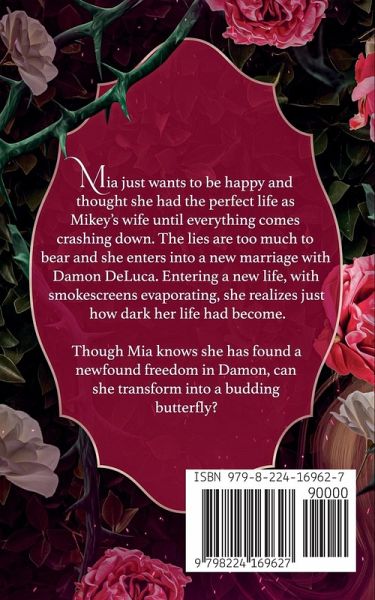 Mia just wants to be happy and thought she had the perfect life as Mikey's wife until everything comes crashing down. The lies are too much to bear and she enters into a new marriage with Damon DeLuca. Entering a new life, with smokescreens evaporating, she realizes just how dark her life had become. Though Mia knows she has found a newfound freedom in Damon, can she transform into a budding butterfly? Disclaimer - The book has mature language, sex, abuse, and references to torture and rape.