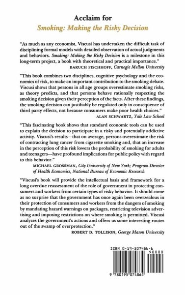 This is a book on smoking that uses rigorous empirical data to explore in detail the character of the tradeoffs that people make in choosing whether to smoke or not to smoke. It is, therefore, not strictly about the hazards of smoking but about how people's perceptions of the risk of smoking affects their smoking behaviour. Some of the interesting and potentially controversial conclusions include: 1) People overestimate the risk of lung cancer compared to the actual incidence of the disease; 2) if people had an accurate perception of the risk of lung cancer national smoking rates would rise by 8%; 3) excise taxes on cigarettes increase people's risk perceptions and decrease smoking rates; 4) people who smoke are more likely to accept work in hazardous professions, and require less extra compensation for hazardous work than non-smokers; 5) young people, who are making the decision whether to smoke have a higher perception of the risks of smoking than older people.