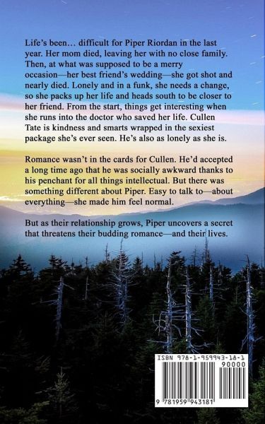 Life's been... difficult for Piper Riordan in the last year. Her mom died, leaving her with no close family. Then, at what was supposed to be a merry occasion-her best friend's wedding-she got shot and nearly died. Lonely and in a funk, she needs a change, so she packs up her life and heads south to be closer to her friend. From the start, things get interesting when she runs into the doctor who saved her life. Cullen Tate is kindness and smarts wrapped in the sexiest package she's ever seen. He's also as lonely as she is. Romance wasn't in the cards for Cullen. He'd accepted a long time ago that he was socially awkward thanks to his penchant for all things intellectual. But there was something different about Piper. Easy to talk to-about everything-she made him feel normal. But as their relationship grows, Piper uncovers a secret that threatens their budding romance-and their lives.