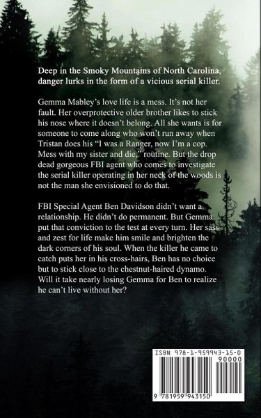 Gemma Mabley's love life is a mess. It's not her fault. Her overprotective older brother likes to stick his nose where it doesn't belong. All she wants is for someone to come along who won't run away when Tristan does his "I was a Ranger, now I'm a cop. Mess with my sister and die," routine. But the drop dead gorgeous FBI agent who comes to investigate the serial killer operating in her neck of the woods is not the man she envisioned to do that. FBI Special Agent Ben Davidson didn't want a relationship. He didn't do permanent. But Gemma put that conviction to the test at every turn. Her sass and zest for life make him smile and brighten the dark corners of his soul. When the killer he came to catch puts her in his cross-hairs, Ben has no choice but to stick close to the chestnut-haired dynamo. Will it take nearly losing Gemma for Ben to realize he can't live without her?