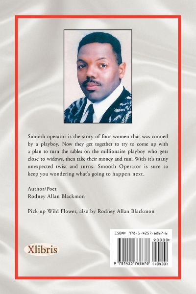Smooth operator is the story of four women that was coned by a playboy. Now they get together to try to come up with a plan to turn the tables on the millionaire playboy who gets close to widows, then take their money and run. With it's many unexpected twist and turns. Smooth Operator is sure to keep you wandering what's going to happen next. Author/Poet Rodney Allan Blackmon Pick up Wild Flower, also by Rodney Allan Blackmon