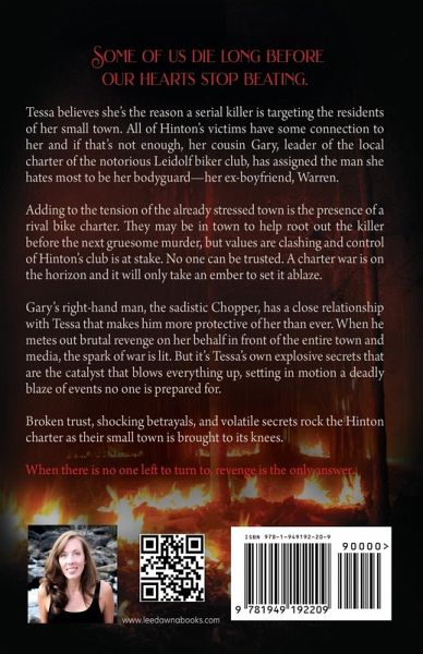 Some of us die long before our hearts stop beating. Tessa believes she's the reason a serial killer is targeting the residents of her small town. All of Hinton's victims have some connection to her and if that's not enough, her cousin Gary, leader of the local charter of the notorious Leidolf biker club, has assigned the man she hates most to be her bodyguard-her ex-boyfriend, Warren. Adding to the tension of the already stressed town is the presence of a rival bike charter. They may be in town to help root out the killer before the next gruesome murder, but values are clashing and control of Hinton's club is at stake. No one can be trusted. A charter war is on the horizon and it will only take an ember to set it ablaze. Gary's right-hand man, the sadistic Chopper, has a close relationship with Tessa that makes him more protective of her than ever. When he metes out brutal revenge on her behalf in front of the entire town and media, the spark of war is lit. But it's Tessa's own explosive secrets that are the catalyst that blows everything up, setting in motion a deadly blaze of events no one is prepared for. Broken trust, shocking betrayals, and volatile secrets rock the Hinton charter as their small town is brought to its knees. When there is no one left to turn to, revenge is the only answer.