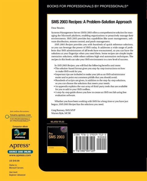 SMS 2003 Networking Recipes provides hundreds of quick-reference implementation solutions for the Windows administrator. The book addresses a wide range of problems that all levels of SMS administrators have reported to our authors in real-world environments.