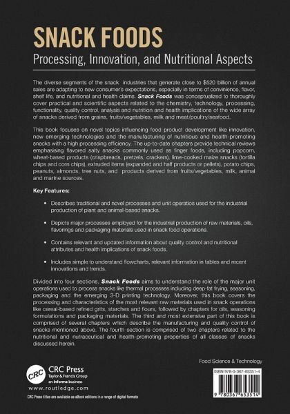 This book provides a technical review of snack foods. Emphasis is made in flavored salty snacks commonly used as finger foods including popcorn, wheat-based snacks (crispbreads, pretzels, crackers), lime-cooked maize products (tortilla chips), potato chips, peanuts, almonds, and snacks from fruits/vegetables, milk, animal and marine sources.