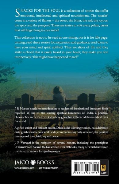 Snacks For The Soul is a collection of stories that offer emotional, intellectual and spiritual nourishment. The 'snacks' come in a variety of flavors - the sweet, the bitter, the sad, the joyous, the spicy and the pungent! There are tastes to suit every palate, tastes that will linger long in your mind! This collection is not to be read at one sitting; nor is it for idle page-turning; read these stories for inspiration and guidance; read them to have your mind and spirit uplifted. They are slices of life and they strike a chord that is rarely heard in your heart; they make you feel instinctively "this might have happened to me!"