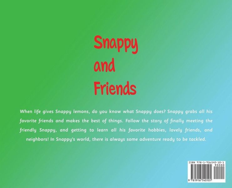 When life gives Snappy lemons, do you know what Snappy does? Snappy grabs all his favorite friends and makes the best of things. Follow the story of finally meeting the friendly Snappy, and getting to learn all his favorite hobbies, lovely friends, and neighbors! In Snappy's world, there is always some adventure ready to be tackled.