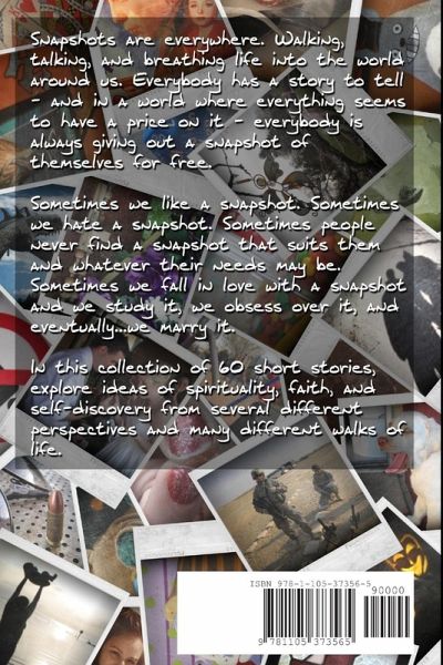 Snapshots are everywhere. Walking, talking, and breathing life into the world around us. Everybody has a story to tell - and in a world where everything has a price on it - everybody is always giving out a snapshot of themselves for free. Sometimes we like a snapshot. Sometimes we hate a snapshot. Sometimes people never find a snapshot that suits them and whatever their needs may be. Sometimes we fall in love with a snapshot and we study it, we obsess over it, and eventually...we marry it. In this collection of 60 short stories, explore the ideas of spirituality, faith, and self-discovery from several different perspectives and many walks of life.