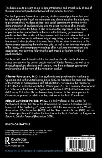 The book presents Ferenczi as a person; his discovery of psychoanalysis and his relationship with Freud; the theoretical and clinical novelties he introduced to psychoanalysis; his deep political and social commitment, striving for the democratization of psychoanalysis; and the great relevance of his thought and perspective for the future. It also talks about his repression in the history of psychoanalysis as well as his influence in the following generations of psychoanalysts. The reader will be presented with the most relevant historical milestones and concepts, with new insights regarding some of Ferenczi's most fundamental ideas (such as his trauma theory, his technical innovations or his developments regarding the end of analysis), as well as an informed viewpoint of his legacy, the contemporary readings of his work andthe institutions and associations that continue following the path traced by l'enfant terrible of psychoanalysis.