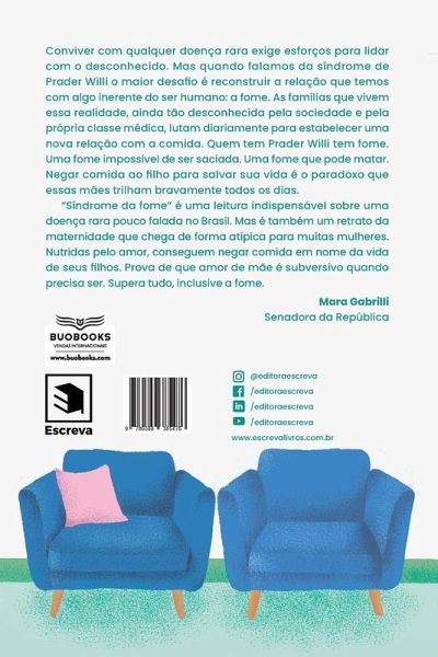 Você já imaginou se o seu filho (a) tivesse fome 24 horas por dia? Essa é a realidade de quem vive com a Síndrome de Prader-Willi (SPW). A obra Síndrome da Fome: um olhar materno sobre a síndrome de Prader-Willi é escrito por Cláudia Abel, mãe da Gabriela Abel que há 23 anos vive com a doença rara. Gabriela Abel é o retrato de pessoas que vivem com a SPW. Mas o livro Síndrome da Fome: um olhar materno sobre a síndrome de Prader-Willi, não é a apenas a história de mãe e filha. É um convite para aprender a enxergar o mundo atrás dos olhos de alguém que cuida de uma pessoa com SPW, por meio da convivência com a família, com o Estado e com a sociedade. Cláudia Abel fez do prognóstico da filha a sua missão de vida. É uma mãe otimista que vê no caos de uma síndrome e no preconceito de uma sociedade, a oportunidade de escolher outros caminhos, que sejam mais leves e felizes. Por meio de sua vivência, busca contribuir com a construção de histórias de sucesso de outras mães de Prader. Esse é a prova de que amor de uma mãe que supera tudo, inclusive a fome. A obra Síndrome da Fome: um olhar materno sobre a síndrome de Prader-Willi tem o prefácio de Dra. Ruth Rocha Franco, médica endocrinologista e coordenadora dos ambulatórios de Prader-Willi e Cirurgia Bariátrica do adolescente do Instituto da Criança da FMUSP; comentários de Liane Mufarrej Motta, presidente da SPW Brasil e Mara Gabrilli, senadora da República, representante do Brasil em Comitê da ONU e defensora dos direitos das pessoas com deficiência e doenças raras.