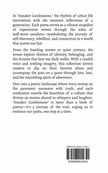 In "Sneaker Confessions," the rhythm of urban life intertwines with the intimate reflections of a generation. Each poem serves as a vibrant snapshot of experiences woven through the soles of well-worn sneakers-symbolizing the journey of self-discovery, rebellion, and connection in a world that moves too fast. From the bustling streets to quiet corners, the verses explore themes of identity, belonging, and the dreams that lace our daily walks. With a candid voice and striking imagery, this collection invites readers to slip on their favorite shoes and accompany the poet on a quest through love, loss, and the unyielding spirit of adventure. Dive into a poetic landscape where every stomp on the pavement resonates with truth, and each confession unveils the heartbeat of a culture that thrives on stories shared in whispers and laughter. "Sneaker Confessions" is more than a book of poetry-it's a journey of the soul, urging us to embrace our paths, one step at a time.