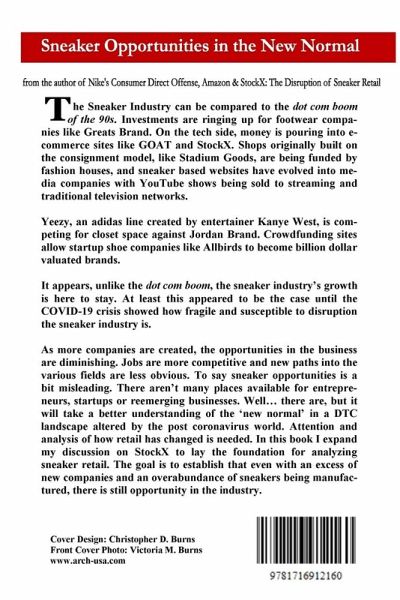 The Sneaker Industry can be compared to the dot com boom of the 90s. Investments are ringing up for footwear companies like Greats Brand. On the tech side, money is pouring into e-commerce sites like GOAT and StockX. Shops originally built on the consignment model, like Stadium Goods, are being funded by fashion houses, and sneaker based websites have evolved into media companies with YouTube shows being sold to streaming and traditional television networks. Yeezy, an adidas line created by entertainer Kanye West, is competing for closet space against Jordan Brand. Crowdfunding sites allow startup shoe companies like Allbirds to become billion dollar valuated brands. It appears, unlike the dot com boom, the sneaker industry's growth is here to stay. At least this appeared to be the case until the COVID-19 crisis showed how fragile and susceptible to disruption the sneaker industry is. As more companies are created, the opportunities in the business are diminishing. Jobs are more competitive and new paths into the various fields are less obvious. To say sneaker opportunities is a bit misleading. There aren't many places available for entrepreneurs, startups or reemerging businesses. Well... there are, but it will take a better understanding of the 'new normal' in a DTC landscape altered by the post coronavirus world. Attention and analysis of how retail has changed is needed. In this book I expand my discussion on StockX to lay the foundation for analyzing sneaker retail. The goal is to establish that even with an excess of new companies and an overabundance of sneakers being manufactured, there is still opportunity in the industry.