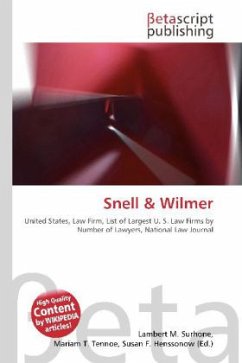 Please note that the content of this book primarily consists of articles available from Wikipedia or other free sources online. Snell & Wilmer was founded in 1938 by Frank Snell Jr. and Mark Wilmer.During the 1940s and 1950s, Frank Snell was involved in the improvement of the municipal government of Phoenix, seeking legal redress from corrupt public officials and the annexation of more land for the city. During the 1960s, Mark Wilmer represented the state of Arizona in Arizona v. California, a still-ongoing dispute over water rights to the Colorado River. The firm began expanding outside Phoenix in the late 1980s, establishing offices first in Tucson, Arizona and Irvine, California, then later into Utah, Colorado, and Nevada.In 2006, Snell & Wilmer absorbed the litigation boutique of Bivens & Nore.In late 2008, Snell & Wilmer opened its 7th office in Los Cabos, Mexico.