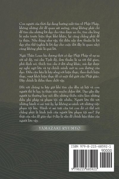 Nh¿ng s¿ ng¿¿c ¿ãi t¿ khi còn bé, không là chuy¿n l¿. L¿i n¿a vi¿c b¿o l¿c ¿ h¿c ¿¿¿ng, s¿ ¿¿i x¿ tàn nh¿n, b¿o l¿c trong gia ¿ình v¿n ti¿p t¿c ¿¿¿c báo cáo r¿ng, trong m¿¿i n¿m g¿n ¿ây quá x¿u t¿. Thêm n¿a vi¿c ch¿ng ¿¿ng ¿¿ng c¿a s¿ phá s¿n, th¿t nghi¿p, c¿ hàng löt chuy¿n b¿ ¿nh h¿¿ng không th¿ bi¿t ¿¿ so sánh ¿¿¿c. H¿u nh¿ ¿ trong th¿i ¿¿i n¿y không th¿ th¿y tr¿¿c h¿t ¿¿¿c, mà chúng ta tùy theo t¿ng tr¿¿ng h¿p gi¿i h¿n ¿¿ sinh s¿ng, ch¿ không ¿¿¿c ngöi tr¿. Nh¿ng vi¿c nói ¿ tr¿¿c s¿ nh¿ th¿ nào, nói sao ¿ây? ¿ trong nh¿ng b¿t an ¿ó ph¿i làm sao cho t¿t, mà m¿i ngày, m¿i ngày chúng ta ph¿i ¿¿¿ng ¿¿u s¿ng v¿i nó? C¿ chính tr¿, l¿n giáo d¿c r¿i tôn giáo c¿ng b¿ ng¿p th¿. S¿ th¿t thì chúng ta ph¿i s¿ng ¿¿ n¿¿ng vào ¿âu cho t¿t ¿ây, mà ¿¿¿ng ¿i thì th¿t là m¿ t¿i. Vi¿c h¿ b¿i c¿a nh¿ng chính tr¿ gia v¿ nh¿ng hành vi quan liêu b¿t chính, mà d¿¿i m¿t c¿a c¿nh sát c¿ng d¿ bi¿t vi¿c không rõ ràng n¿y. K¿t qu¿ c¿a vi¿c sa ¿¿a v¿ giáo d¿c c¿ng nh¿ c¿a nh¿ng giáo ¿oàn c¿a tôn giáo v¿ vi¿c d¿i trá trong vi¿c c¿¿ng ép vi¿c hi¿n t¿ng ti¿n b¿c v.v... toàn là nh¿ng chuy¿n ¿au lòng. M¿t khác chung quanh chúng ta th¿c t¿ có nhi¿u v¿n ¿¿ hi¿n th¿c nh¿ s¿ cùng kh¿, ¿ói nghèo, v¿n ¿¿ dân t¿c sai bi¿t và ngay c¿ v¿n ¿¿ chi¿n tranh c¿ng ¿ang g¿p ph¿i. V¿i ý ngh¿a n¿y, ¿¿i di¿n v¿i ng¿ tr¿¿c ác th¿ (ngh¿a là th¿i ¿¿i mà con ng¿¿i và xã h¿i b¿ ô nhi¿m), trong ¿¿i ng¿ tr¿¿c không có Ph¿t (th¿i ¿¿i h¿u nh¿ không th¿y ¿¿¿c s¿ chân th¿t), ngoài ra thì ch¿ng còn gì c¿. Tuy nhiên con ng¿¿i c¿a th¿i ¿¿i ¿ang h¿¿ng m¿t tìm v¿ Ph¿t Pháp, không nh¿ng ch¿ ¿¿ quan sát suông, c¿ng không ph¿i ch¿ ¿¿ tìm c¿u nh¿ng l¿i d¿y cho tâm ¿¿¿c an ¿n, tìm c¿u lòng bi m¿n tr¿¿c hi¿n th¿c khó kh¿n, l¿i c¿ng ch¿ng ph¿i ¿¿ ta thán. N¿u ¿úng nh¿ v¿y, thì ¿i¿u n¿y ¿¿n thu¿n là l¿i d¿y y¿m th¿ (ngh¿a là l¿i d¿y cho cu¿c ¿¿i ¿¿y bi quan n¿y) c¿ng không ph¿i là quá l¿i. Ngài Thân Loan lúc ¿¿¿ng th¿i có d¿y Ph¿t Pháp v¿ s¿ xa r¿i u¿ ¿¿, vui c¿u T¿nh ¿¿, ¿¿n thu¿n là xa r¿i th¿ gian, ph¿ ¿¿nh nó, thích tìm c¿u ¿ ¿¿i s¿ng khác, mà ¿¿t ¿¿¿c s¿ nghi ng¿ l¿n và t¿ chính mình m¿ ra con ¿¿¿ng c¿