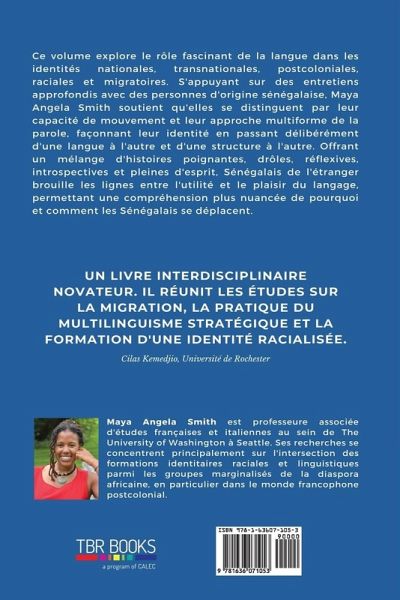 Sénégalais de l'étranger explore le rôle fascinant de la langue dans les identités nationales, transnationales, postcoloniales, raciales et migratoires. S'appuyant sur des entretiens approfondis avec des personnes d'origine sénégalaise, Maya Angela Smith soutient qu'elles se distinguent par leur capacité de mouvement et leur approche multiforme de la parole, façonnant leur identité ainsi que le passage délibéré d'une langue à l'autre et d'une structure à l'autre. Offrant un mélange d'histoires poignantes, drôles, réflexives, introspectives et pleines d'esprit. Sénégalais de l'étranger brouille les lignes entre utilité et plaisir de la maîtrise d'une langue, tout en offrant une analyse nuancée des raisons et moyens qui expliquent les mouvements migratoires des populations sénégalaise. Publ ié avec le soutien de l 'University of Washington et en col laboration avec les presses universitaires de l 'University of Wisconsin.