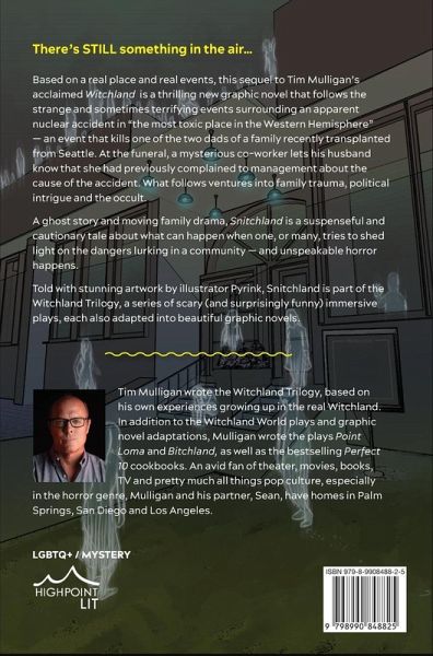 There's STILL something in the air... Based on a real place and real events, this sequel to Tim Mulligan's acclaimed Witchland is a thrilling new graphic novel that follows the strange and sometimes terrifying events surrounding an apparent nuclear accident in "the most toxic place in the Western Hemisphere" - an event that kills one of the two dads of a family recently transplanted from Seattle. At the funeral, a mysterious co-worker lets his husband know that she had previously complained to management about the cause of the accident. What follows ventures into family trauma, political intrigue and the occult. A ghost story and moving family drama, Snitchland is a suspenseful and cautionary tale about what can happen when one, or many, tries to shed light on the dangers lurking in a community - and unspeakable horror happens. Told with stunning artwork by illustrator Pyrink, Snitchland is part of the Witchland Trilogy, a series of scary (and surprisingly funny) immersive plays, each also adapted into beautiful graphic novels. _________________________ Tim Mulligan wrote the Witchland Trilogy, based on his own experiences growing up in the real Witchland. In addition to the Witchland World plays and graphic novel adaptations, Mulligan wrote the plays Point Loma and Bitchland, as well as the bestselling Perfect 10 cookbooks. An avid fan of theater, movies, books, TV and pretty much all things pop culture, especially in the horror genre, Mulligan and his partner, Sean, have homes in Palm Springs, San Diego and Los Angeles