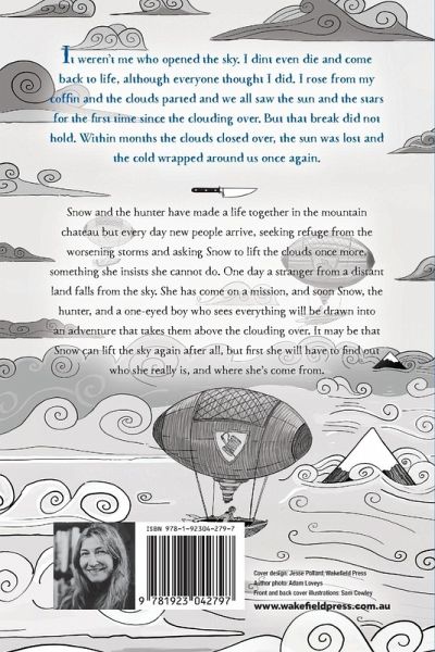 It weren't me who opened the sky. I dint even die and come back to life, although everyone thought I did. I rose from my coffin and the clouds parted and we all saw the sun and the stars for the first time since the clouding over. But that break did not hold. Within months the clouds closed over, the sun was lost and the cold wrapped around us once again. Snow and the hunter have made a life together in the mountain chateau but every day new people arrive, seeking refuge from the worsening storms and asking Snow to lift the clouds once more, something she insists she cannot do. One day a stranger from a distant land falls from the sky. She has come on a mission, and soon Snow, the hunter, and a one-eyed boy who sees everything will be drawn into an adventure that takes them above the clouding over. It may be that Snow can lift the sky again after all, but first she will have to find out who she really is, and where she's come from.