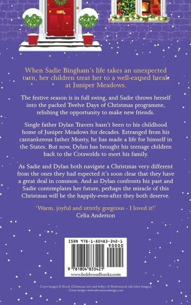 The BRAND NEW instalment in Sarah Bennett's gorgeous, romantic Juniper Meadows series. When Sadie Bingham's life takes an unexpected turn, her children treat her to a well-earned break at Juniper Meadows, the gorgeous Cotswolds estate owned by the Travers family. The festive season is in full swing, and Sadie throws herself into the packed Twelve Days of Christmas programme, relishing the opportunity to make new friends and new memories. Single father Dylan Travers hasn't been to his childhood home of Juniper Meadows for decades. Estranged from his cantankerous father Monty, he has made a happy life for himself in the States. But now with teenage children keen to know more about their roots, Dylan has brought them back to the Cotswolds to meet his family. As Sadie and Dylan both navigate a Christmas very different from the ones they had expected it's soon clear that, geography apart, they have a great deal in common. And as Dylan confronts his past and Sadie contemplates her future, perhaps the miracle of this Christmas will be the happily-ever-after they both deserve. Let Sarah Bennett whisk you away to a snowy Cotswolds for the perfect winter romance. A Sarah Bennett book is guaranteed to brighten any day, perfect for all fans of Cathy Bramley, Katie Fforde and Phillipa Ashley. Readers love Sarah Bennett: 'This book has all you could wish for, **great setting, great characters, great story **written in the great style we have come to expect from anything written by Sarah Bennett.'⭐⭐⭐⭐⭐ 'I just loved this book so much that I only put it down to get a bit of sleep. I started this book in the early hours of this morning when I went to bed and got to chapter 18 and then I had a couple of hours sleep, I have now continued to read on and have finished this book today.'⭐⭐⭐⭐⭐ 'Sarah has an easy going writing style that is easy to get used to and easy to get along with. In fact reading one of Sarah's books seems more like a chat between friends rather than reading a book.'⭐⭐⭐⭐⭐ 'Be still my beating heart!! Sarah, where on Earth have you been all my life Why on Earth am I only now discovering your stunning books!! I absolutely LOVE, LOVE LOVED this absolutely gorgeous book.'⭐⭐⭐⭐⭐