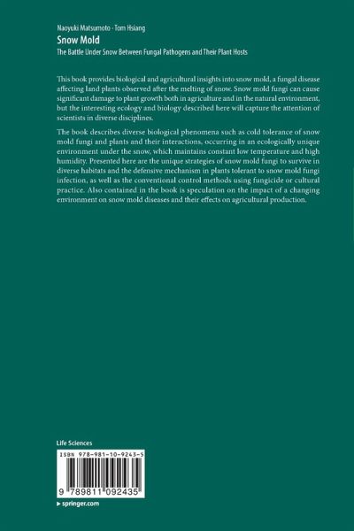 The book describes diverse biological phenomena such as cold tolerance of snow mold fungi and plants and their interactions, occurring in an ecologically unique environment under the snow, which maintains constant low temperature and high humidity. Presented here are the unique strategies of snow mold fungi to survive in diverse habitats and the defensive mechanism in plants tolerant to snow mold fungi infection, as well as the conventional control methods using fungicide or cultural practice. Also contained in the book is speculation on the impact of a changing environment on snow mold diseasesand their effects on agricultural production.