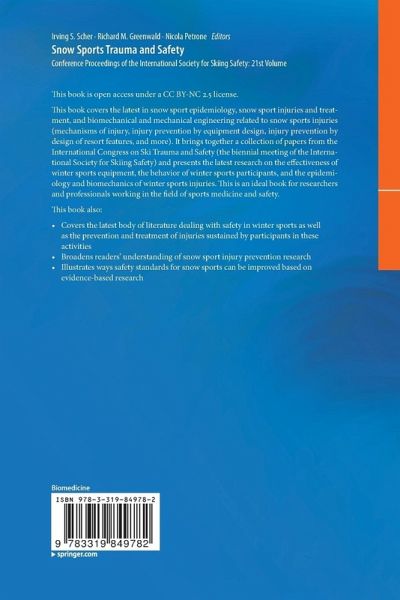 This book is open access under a CC BY-NC 2.5 license. This book covers the latest in snow sport epidemiology, snow sport injuries and treatment, and biomechanical/mechanical engineering related to snow sports injuries (mechanisms of injury, injury prevention by equipment design, injury prevention by design of resort features, and more). It brings together a collection of papers from the International Congress on Ski Trauma and Safety (the biennal meeting of the International Society for Skiing Safety) and presents the latest research on the effectiveness of winter sports equipment, the…mehr