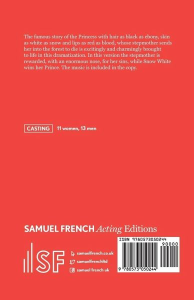 The famous story of the Princess with hair as black as ebony, skin as white as snow and lips as red as blood, whose stepmother sends her into the forest to die is excitingly and charmingly brought to life in this dramatization. In this version the stepmother is rewarded, with an enormous nose, for her sins, while Snow White wins her Prince. The music is included in the copy.-11 women, 13 men