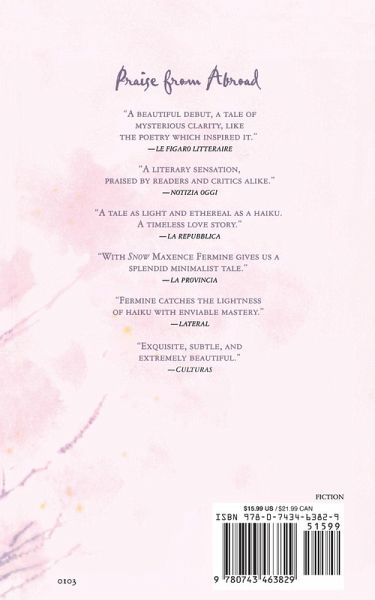 Yuko Akita had two passions. Haiku and snow. It is April 1884 and Yuko Akita has reached his seventeenth birthday on the Island of Hokkaid in the North of Japan. The time has come to choose his vocation, warrior or monk, but against the wishes of his father, Yuko settles on a third option: he will be a poet. Yuko begins to write the seventeen-syllable poems we know as haiku--all celebrating the beauty of snow, his one great subject. One day, the Imperial Poet arrives from the Emperor's court. He has heard about the beauty of Yuko's poems and has come to meet the young poet himself. While agreeing the poems have a music all their own, the Imperial Poet notes that lacking color, Yuko's poems are destined to remain invisible to the world. If the young poet is to learn color, he must study with the great artist Soseki in the south of Japan. Yuko sets off on a treacherous journey across the whole of Japan. Cold, hungry, and exhausted, he encounters a vision that will forever change his life. It is a woman, frozen in the ice. With pale gold hair, ice blue eyes and a face as white as snow, the dead beauty will obsess Yuko. Who was she? How did she come to meet her death in the depths of his beloved snow? Arriving at Soseki's door, Yuko is shocked to discover that the great master of color is blind. He will gradullay come to learn that color is not something outside of us, but within us. He will also learn about his master's Samurai past...and Soseki's link to the woman in the snow. It is a beautiful love story which will have its echo in Yuko's own as he finds his own, living, daughter of snow.... With stunning visual images created out of minimalist prose, Snow is as delicate and inspiring as the haiku poetry it celebrates and emulates. A swift and refreshing read, the novel treats readers to a gorgeous love story while gently floating ideas such as what is the nature of art and perception? What is the place of passion in art and in life? Highly romantic and gracefully written, Snow is destined to become a cult classic.