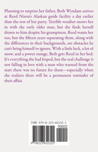 Planning to surprise her father, Beth Wyndam arrives at Reed Nixon's Alaskan guide facility a day earlier than the rest of her party. Terrible weather snows her in with the surly older man, but she finds herself drawn to him despite his grumpiness. Reed wants her too, but the fifteen years separating them, along with the differences in their backgrounds, are obstacles he can't bring himself to ignore. With a little luck, a lot of snow, and a power outage, Beth gets Reed in her bed. It's everything she had hoped, but the real challenge is not falling in love with a man who warned from the start there was no future for them-especially when she realizes there will be a permanent reminder of their affair.