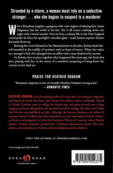 Stranded by a storm, a woman must rely on a seductive stranger whom she begins to suspect is a murderer . . . With a megahit on Broadway, a gorgeous wife, and a legion of adoring fans, Justin Magnasun has the world at his feet—but it all comes crashing down on a snowy night that ends in a brutal murder. Now, the world-famous playwright lives a solitary life in the New England countryside, far from the relentless glare of the spotlight. Until Boston reporter Kristin Kennedy shows up. Braving the worst blizzard to hit Massachusetts in decades, Kristin finds herself stranded in the middle of nowhere with no hope of rescue. Then she wakes up buck naked in a stranger’s bed. She couldn’t have predicted the desire that would spark between them, plunging her into an affair with a man shadowed by secrets. Is Justin a cold-blooded killer? As Kristin tries to piece together what happened five years ago, she finds that she’s playing with fire, at the mercy of a murderer preparing to bring down the curtain on her final act.