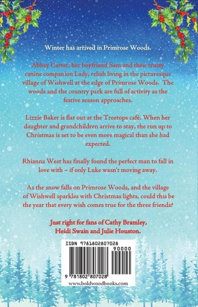 Winter has arrived in Primrose Woods bringing with it new loves, new adventures and warm hugs on cold days. Abbey Carter, her boyfriend Sam and their trusty canine companion Lady, relish living in the picturesque village of Wishwell at the edge of their beloved Primrose Woods. The woods and the country park are full of activity as the festive season approaches. Lizzie Baker is flat out at the Treetops café, serving all sorts of winter warmers, festive goodies and lashings of hot chocolate. And when her daughter and grandchildren arrive to stay, the run up to Christmas is set to be even more magical than she had expected. Rhianna West has finally found the perfect man to fall in love with - if only Luke wasn't moving away in the New Year. As the snow falls on Primrose Woods, and the village of Wishwell sparkles with Christmas lights, could this be the year that every wish comes true for the three friends? Snowflakes Over Primrose Woods is the perfect feel-good love story to snuggle up with this winter. Just right for fans of Cathy Bramley, Heidi Swain and Julie Houston. What readers say about Jill Steeples: 'Jill Steeples skilfully weaves together the contrasting lives of these three likeable women. I soon found myself rooting for each of their journeys and I loved the beautiful setting of Primrose Woods. Romantic, feel-good and heartwarming, I loved it!' 'This book was wonderful and heartwarming and a lovely romance featuring friendships and second chances.I also fell in love with the setting of Primrose Woods. The descriptions had me wanting to go and visit there. Starting Over at Primrose Woods was a wonderful, uplifting book that left me with a warm and happy feeling.' 'After finishing reading this book I felt like I had had a hug from a mug of hot chocolate - I was left feeling all warm and fuzzy inside.' 'If you are after a heart-warming and uplifting story, with a couple of side orders of romance, enchanting backdrops, loveable characters, the most adorable, yet cheeky fur baby, plenty of smiles and a few giggles along the way....Then I HIGHLY recommend reading....Starting Over at Primrose Woods by Jill Steeples'