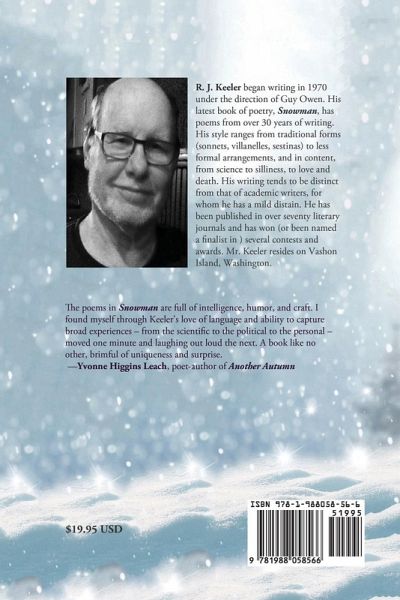 Snowman presents a remarkable collection of intriguing and thought-provoking poetry from R. J. KeelerMichael B. Davie, author, Hammertown The poems in Snowman are full of intelligence, humor, and craft. I found myself through Keeler's love of language and ability to capture broad experiences - from the scientific to the political to the personal - moved one minute and laughing out loud the next. A book like no other, brimful of uniqueness and surprise. -Yvonne Higgins Leach, poet-author of Another Autumn