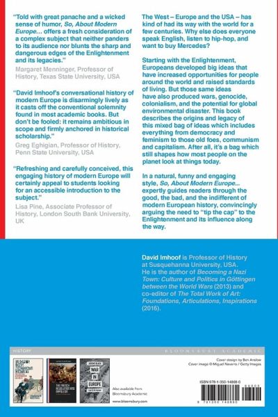The West - Europe and the USA - has kind of had its way with the world for a few centuries. Why else does everyone speak English, listen to hip-hop, and want to buy Mercedes? Starting with the Enlightenment, Europeans developed big ideas that have increased opportunities for people around the world and raised standards of living. But those same ideas have also produced wars, genocide, colonialism, and the potential for global environmental disaster. This book describes the origins and legacy of this mixed bag of ideas which includes everything from democracy and feminism to those old foes, communism and capitalism. After all, it's a bag which still shapes how most people on the planet look at things today. In a natural, funny and engaging style, So, About Modern Europe... expertly guides readers through the good, the bad and the indifferent of modern European history, convincingly arguing the need to 'tip the cap' to the Enlightenment and its influence along the way.