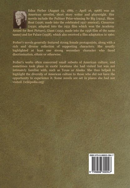 So Big is a 1924 novel written by Edna Ferber. The book was inspired by the life of Antje Paarlberg in the Dutch community of South Holland, Illinois, a Chicago suburb. It was a best-seller in the United States and won the Pulitzer Prize for the Novel in 1925. The story follows the life of a young woman, Selina Peake De Jong, who decides to be a school teacher in farming country. During her stay on the Pool family farm, she encourages the young Roelf Pool to follow his interests, which include art. Upon his mother's death, Roelf runs away to France. Meanwhile, Selina marries a Dutch farmer named Pervus. They have a child together, Dirk, whom she nicknames "So Big," from the common question and answer "How big is baby? " "So-o-o-o big!" (Ferber, 2). Pervus becomes ill and dies, and Selina is forced to take over working on the farm to give Dirk a future. As Dirk gets older, he works as an architect but is more interested in making money than creating buildings and becomes a stock broker, much to his mother's disappointment. His love interest, Dallas O'Mara, an acclaimed artist, echoes this sentiment by trying to convince Dirk that there is more to life than money. Much later in life, Selina is visited by Roelf Pool, who has since become a famous sculptor. Dirk grows very distressed when, after visiting his mother's farm, he realizes that Dallas and Roelf love each other and he cannot compete with the artistically minded sculptor. In the end, Dirk comes to appreciate the wisdom of his mother, who always valued aesthetics and beauty even as she scraped out a living in a stern Dutch community. Ultimately, Dirk is left alone in his sumptuous apartment, saddened by his abandonment of artistic values. Edna Ferber was not confident about So Big. On page 32 of J. E. Smyth's biography of Ferber called Edna Ferber's Hollywood: American Fictions of Gender, Race, and History, Ferber states, "I wrote it against my judgment; I wanted to write it...Nothing ever really happened in the book. It had no plot at all, as book plots go. It had a theme, but you had to read that for yourself between the lines." She argued if anything, "it was a story of the triumph of failure." She sent the book off to her publisher Doubleday apologizing, saying to Russell Doubleday, "I think its publication as a book would hurt you, as publishers, and me as an author." Additionally, she later wrote, "Who would be interested in a novel about a middle-aged woman in a calico dress with wispy hair and bad teeth, grubbing on a little truck farm south of Chicago?" To Ferber's surprise, Doubleday loved the novel. It was a commercial success, sold hundreds of thousands of copies in its first year of publication, and became the best-selling work of fiction in America for the year 1924, according to Publishers Weekly. A number of film adaptations of the novel have been made. The first adaptation, directed by Charles Brabin, was released the same year the novel was published, with Colleen Moore in her first significant dramatic role. The 1932 adaptation, directed by William A. Wellman, featured an ensemble cast led by Barbara Stanwyck, George Brent and Bette Davis. The most recent adaptation, directed by Robert Wise in 1953, starred Jane Wyman and Sterling Hayden. This one softened the ending considerably by including a reconciliation between Dirk and his mother. A satirical version of the novel appears in Bob Clampett's 1946 cartoon Book Revue. A fugitive wolf is running away from the authorities and runs past the book, which features Jimmy Durante on the cover. Durante sticks his famously large nose out and trips the wolf. (wikipedia.org)
