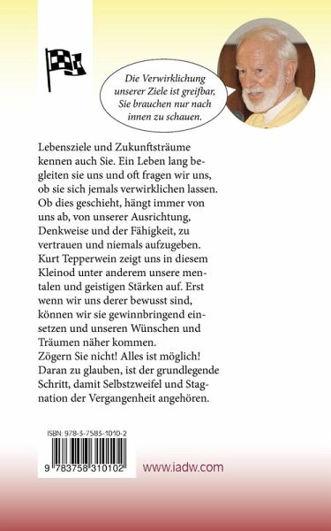 Lebensziele und Zukunftsträume kennen auch Sie. Ein Leben lang begleiten sie uns und oft fragen wir uns, ob sie sich jemals verwirklichen lassen.Ob dies geschieht, hängt immer von uns ab, von unserer Ausrichtung, Denkweise und der Fähigkeit, zu vertrauen und niemals aufzugeben. Kurt Tepperwein zeigt uns in diesem Kleinod unter anderem unsere mentalen und geistigen Stärken auf. Erst wenn wir uns derer bewusst sind, können wir sie gewinnbringend einsetzen und unseren Wünschen und Träumen näher kommen. Zögern Sie nicht! Alles ist möglich! Daran zu glauben, ist der grundlegende Schritt, damit Selbstzweifel und Stagnation der Vergangenheit angehören.