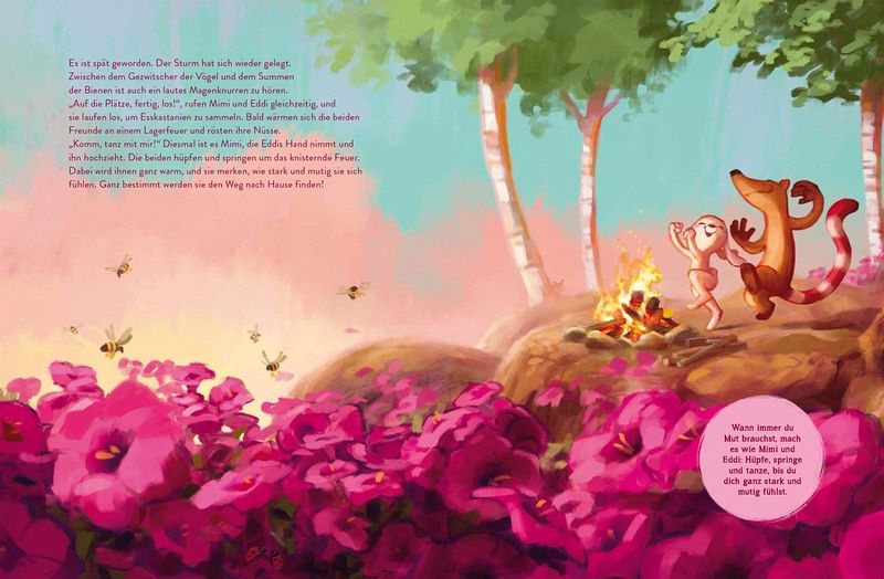 Gemeinsam mit ihrem besten Freund Eddi zieht Mimi jeden Tag los, um magische Momente einzufangen: Wenn sie beim Spielen im Wald lachend über die Erde rollen. Wenn sie ein Floß bauen und auf dem Wasser der Sonne entgegenschaukeln. Oder wenn ein Sturm aufzieht und ein Meer aus Blättern über ihnen durch die Luft tanzt.