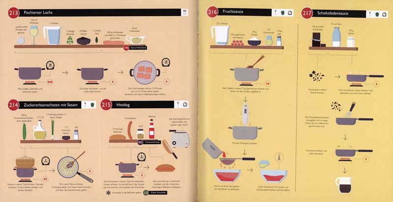 Mit einfachen Piktogrammen statt ellenlangen Rezepten wird jeder spielend leicht zum Meisterkoch. Ob Bolognese oder Pizzateig, fachgerechtes Knacken einer Kokosnuss oder die Wahl des richtigen Messers - 300 gezeichnete Anleitungen sorgen nicht nur für gute Laune sondern auch für tolle Ergebnisse in der Küche. Egal ob Vorspeise, Hauptgang oder Dessert - jedes Gericht wird Schritt-für-Schritt erklärt. Überzeugen Sie sich selbst - es funktioniert und schmeckt wirklich!