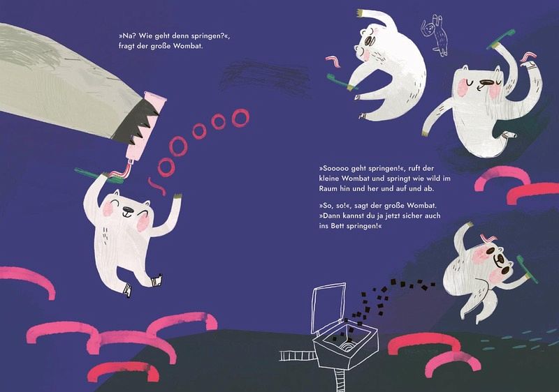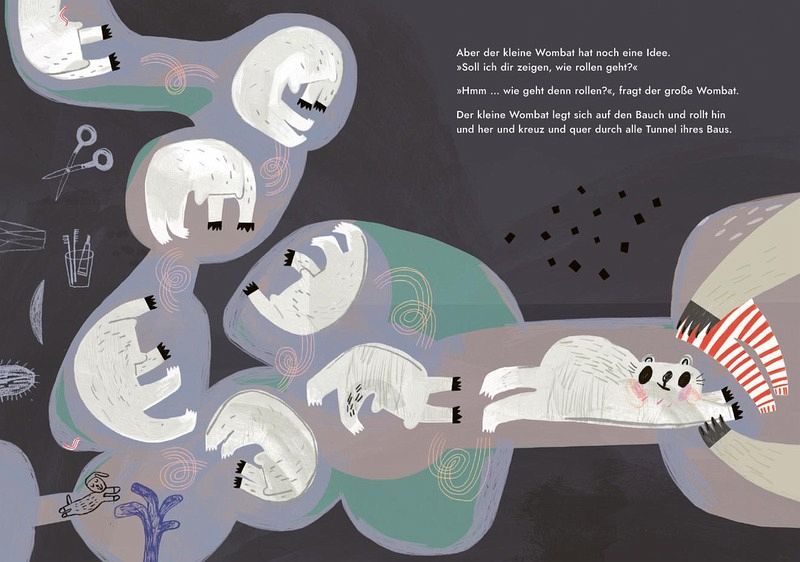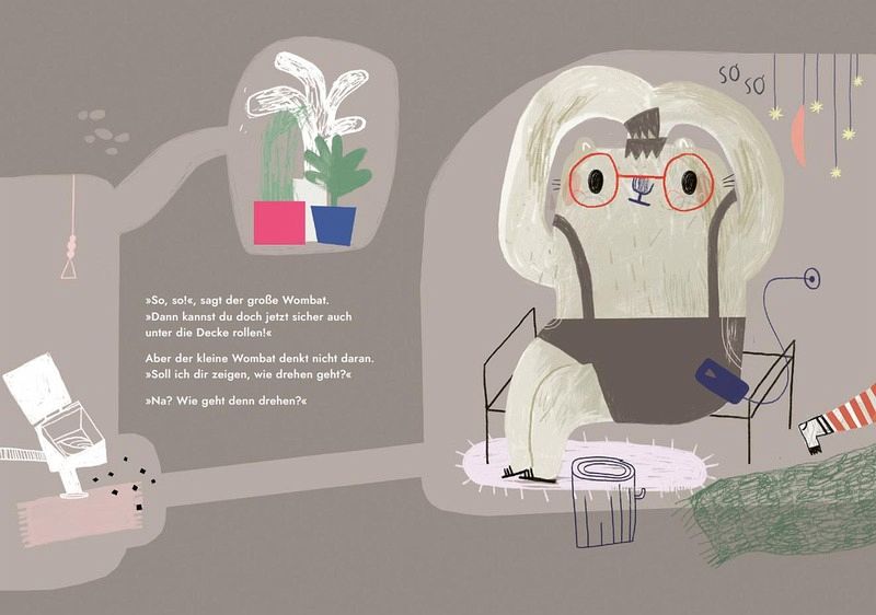 Die Illustrationen sind einerseits grafisch und zugleich künstlerisch voller Textur. Die Wombats sind wahnsinnig toll gestaltete Charaktere. Wir hatten sie direkt gern.