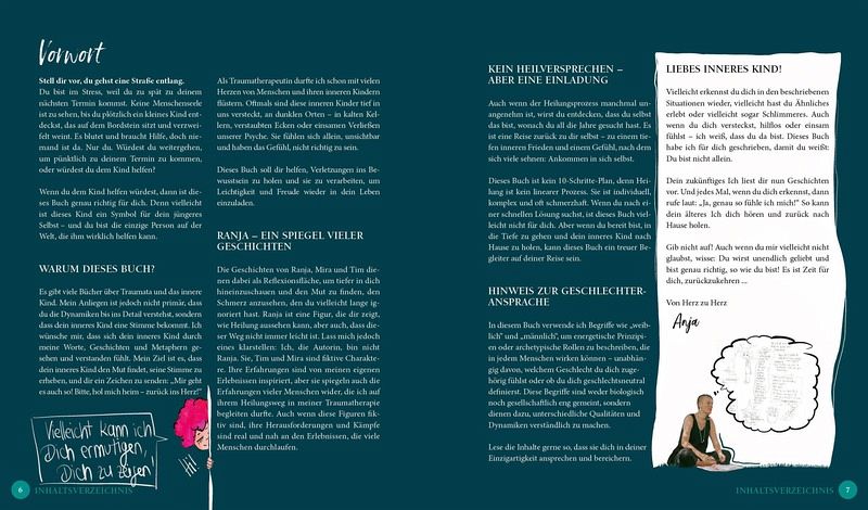 Stell dir vor, du könntest deinem inneren Kind persönlich begegnen - was würdest du ihm sagen? Diese Frage stellt sich Anja Plattner in ihrem neuen Buch und nimmt dich mit auf die Reise mit dem inneren Kind Ranja. Begleite Ranja auf der Suche nach den Antworten auf ihre Lebensfragen und finde auch du heraus, welche Wünsche, Ängste und seelische Traumata dein inneres Kind umtreiben. In zahlreichen Übungen darfst du dich auf eine Reise der Innenschau einlassen und die verborgenen Bausteine deiner Persönlichkeit entschlüsseln.