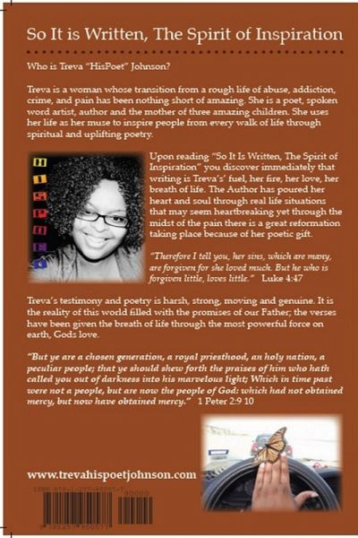 So It Is Written is a collection of poetry that will touch the soul and offer the spirit of healing, love, and faithfulness. These words are meant to pierce the soul of the one who reads them...with in this written work there is truly much to behold...There are no fairy tales here...only real life....but in real life there really is God and His promises are always better than a fairytale...remember that