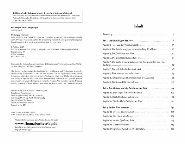 Jahrzehntelange Forschung hat gezeigt, dass Flow der Schlüssel zu Spitzenleistungen, dem Entfalten von Potenzial und Wohlbefinden ist - davon zeugen herausragende Sportler, berühmte Künstler und große Unternehmen wie Toyota, Patagonia und Ericsson. Basierend auf den neuesten wissenschaftlichen Erkenntnissen und evidenzbasierten Strategien nimmt das Buch die Leser mit auf eine Entdeckungsreise in die faszinierende Welt des Flow und zeigt ihnen, wie sie diesen Zustand mit größerer Leichtigkeit und Häufigkeit erleben können. Von den neurowissenschaftlichen Grundlagen über Nutzen und Risiken von Flow bis hin zu einem Werkzeugkasten nützlicher Tools für den Alltag enthält das Buch alles, was man braucht, um sich besser zu fühlen, mehr zu leisten und das eigene Potenzial voll auszuschöpfen. Aus dem Inhalt: - Warum erleben wir Flow? Die neurowissenschaftlichen Grundlagen - Birgt Flow auch Gefahren? Nutzen und Risiken des Flow-Zustands - Wie entwickelt man Flow? Das Toolkit, um Flow im Leben zu integrieren