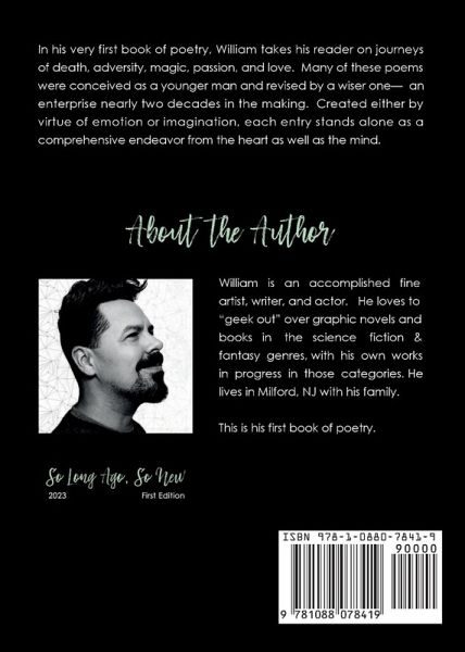 In his very first book of poetry, William takes his reader on journeys of death, adversity, magic, passion, and love. Many of these poems were conceived as a younger man and revised by a wiser one- an enterprise nearly two decades in the making. Created either by virtue of emotion or imagination, each entry stands alone as a comprehensive endeavor from the heart as well as the mind.